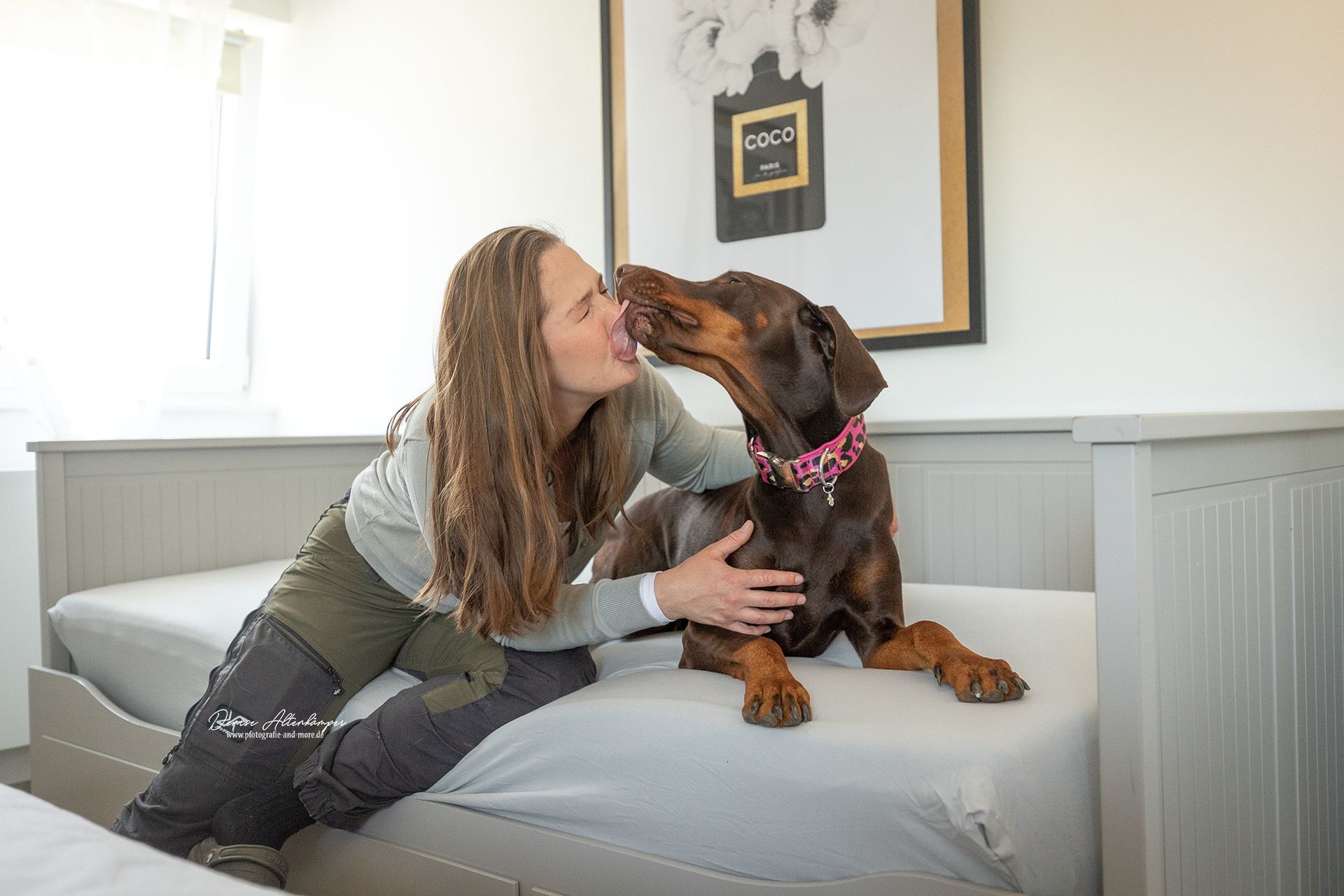 We offer family-oriented and individual dog care. The care takes place on a small scale in our home. The number of dogs varies based on various criteria (size, effort, level of care, etc.). Every dog needs a different amount of attention and we want them to get it. Walking together, feeding together, cuddling sessions, accompanied play, activity according to the needs of the respective dog and shared rest periods are part of our program. Your dog experiences a normal everyday family life with extras. It can also just lie lazily on the blanket or be played with, just as the dog needs it. We don't have kennels, just a home to feel good at.